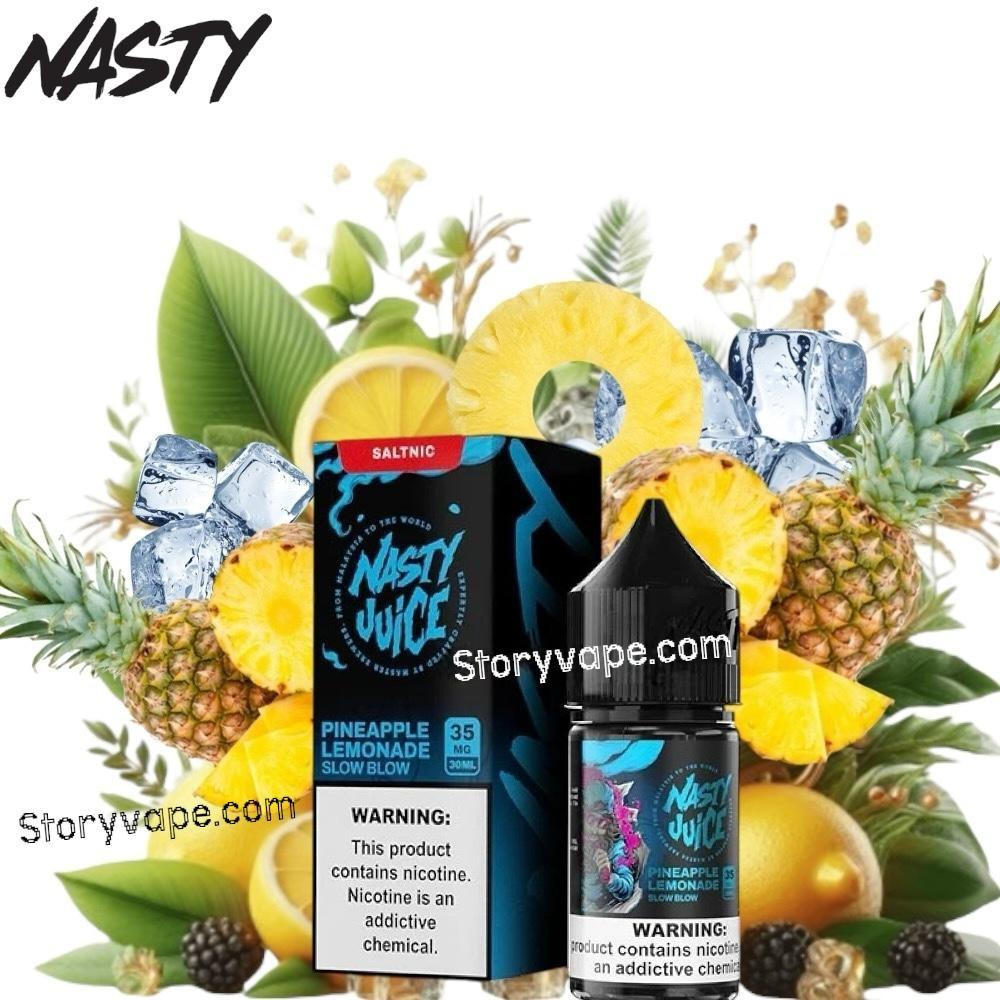 Slow Blow من Nasty SALT عبارة عن مزيج لذيذ من أملاح النيكوتين القوية مع عناصر من الأناناس العطري وصودا الليمون الحامضة مع إضافة الفوران لإنشاء عصير أملاح النيكوتين الفاكهي القائم على المشروب.