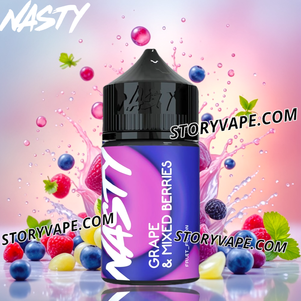 نكهة ناستي الإلكترونية بنكهة العنب والتوت المشكل من ناستي جوس هو مزيج فاكهي من نكهة العنب الداكنة اللاذعة مع مزيج من نكهات التوت المختلط لنكهة تدخين لاذعة.