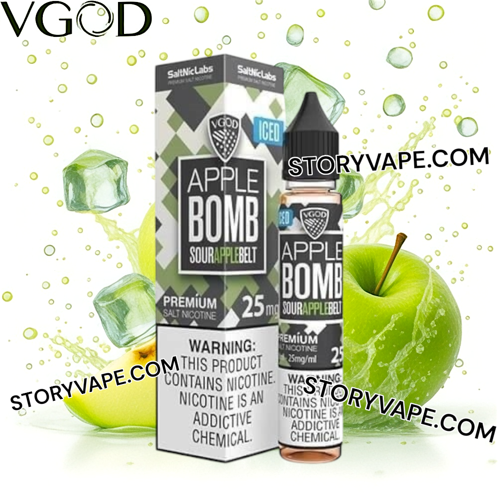 VGOD SaltNic Ice Apple Bomb E-Liquid | VGOD Premium Liquid VGOD Green Apple Ice is a multi-layered burst of delicious Granny Smith apple at the start of the draw, progressing to a rich, tangy, and sour flavor as the sour apple belts on, sweet and spiced, and finishing with a smooth, icy menthol flavor. VGOD SaltNic Ice Apple Bomb E-Liquid is for low-wattage refillable devices only. Primary Flavors: Apple, Menthol Salt Nicotine Premium Liquid Imported | Good Bottle Size: 30ml Nicotine Level: 25mg, 50mg VG/PG: 55%VG / 45%PG Recommended