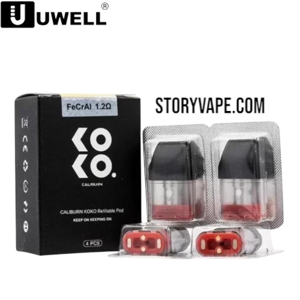 Each Koko Pod comes in a pack of 4 and is made from food grade plastic and uses FeCrAI as the wicking material. Filling is made easy by simply removing the black mouthpiece and filling with your favorite e-liquid. These pods are compatible with the original Uwell Caliburn.