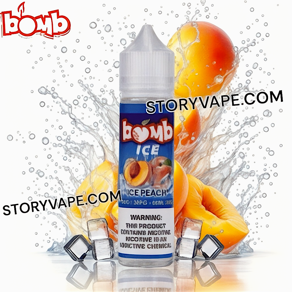 The freshness of natural peach fruit from the coldness of ice Feel like you are at the beach and drinking cold peach juice Bomb Vape Peach Ice Flavor