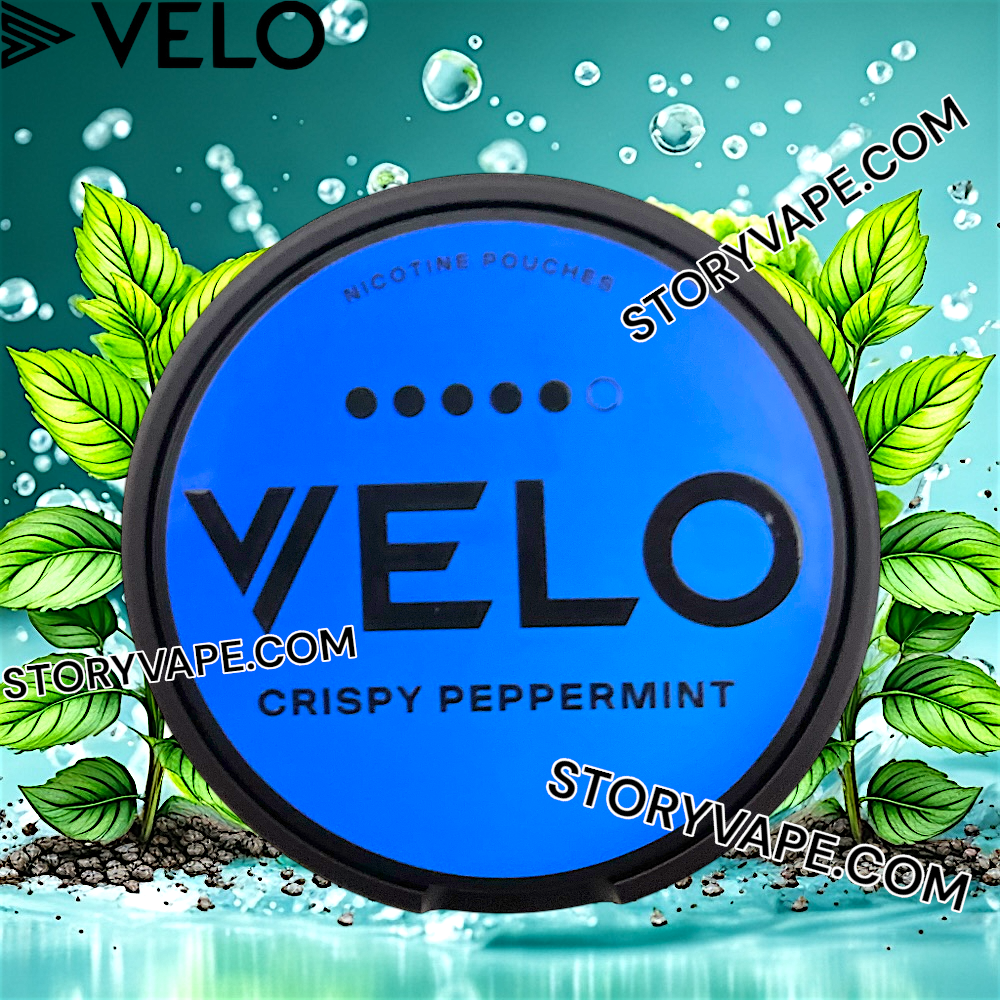 Crispy Peppermint 23 Nicotine Sachets Feel the taste of VELO Crispy Peppermint. Just like on a cold winter's day in the Alps, you will enjoy the refreshing mint flavor with elements of sweetness and the scent of Royal Mint. In a slim form and medium nicotine intensity